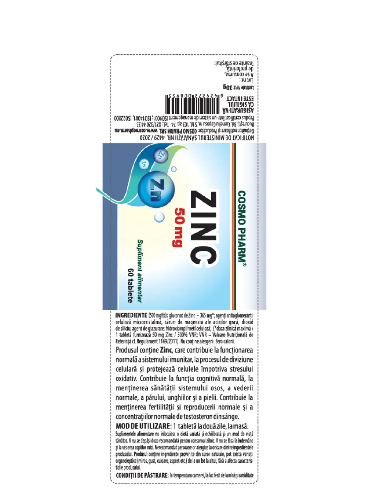 Maximum daily intake / 1 tablet provides 50 mg Zinc/500% NRV; NRV – Nutrient Reference Value according to Regulation 1169/2011). It contains no allergens. Zero calories.